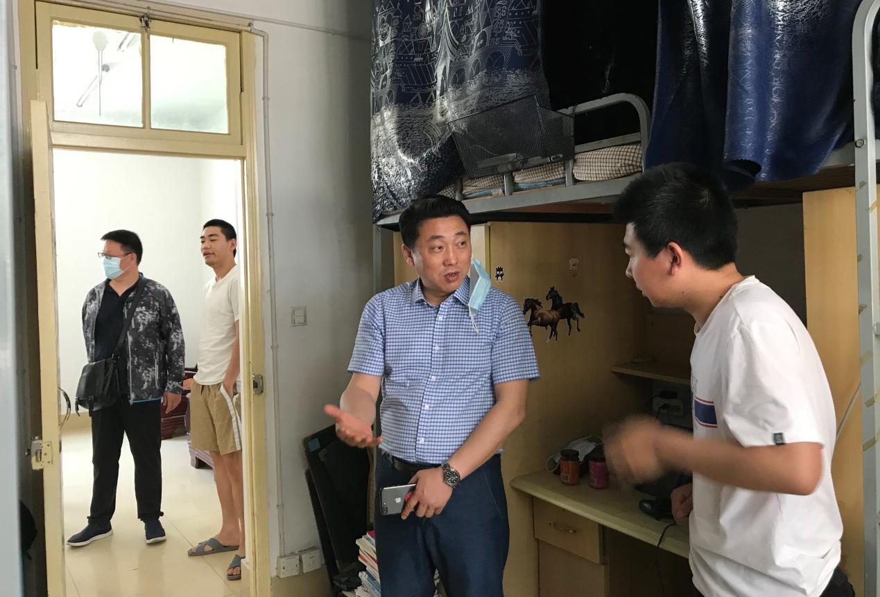 走访过程中,滕书记与与同学们亲切交谈,详细询问他们返校以来的学习生活情况以及毕业去向,告知他们如有难处一定要及时与班主任和辅导员反映,让同学们感受到来自公司的关心和家一般的温暖。滕书记还提醒同学们,虽然现在在校同学不多,但也要保持宿舍的干净整洁,勤打扫,否则不利于自己的身体健康。