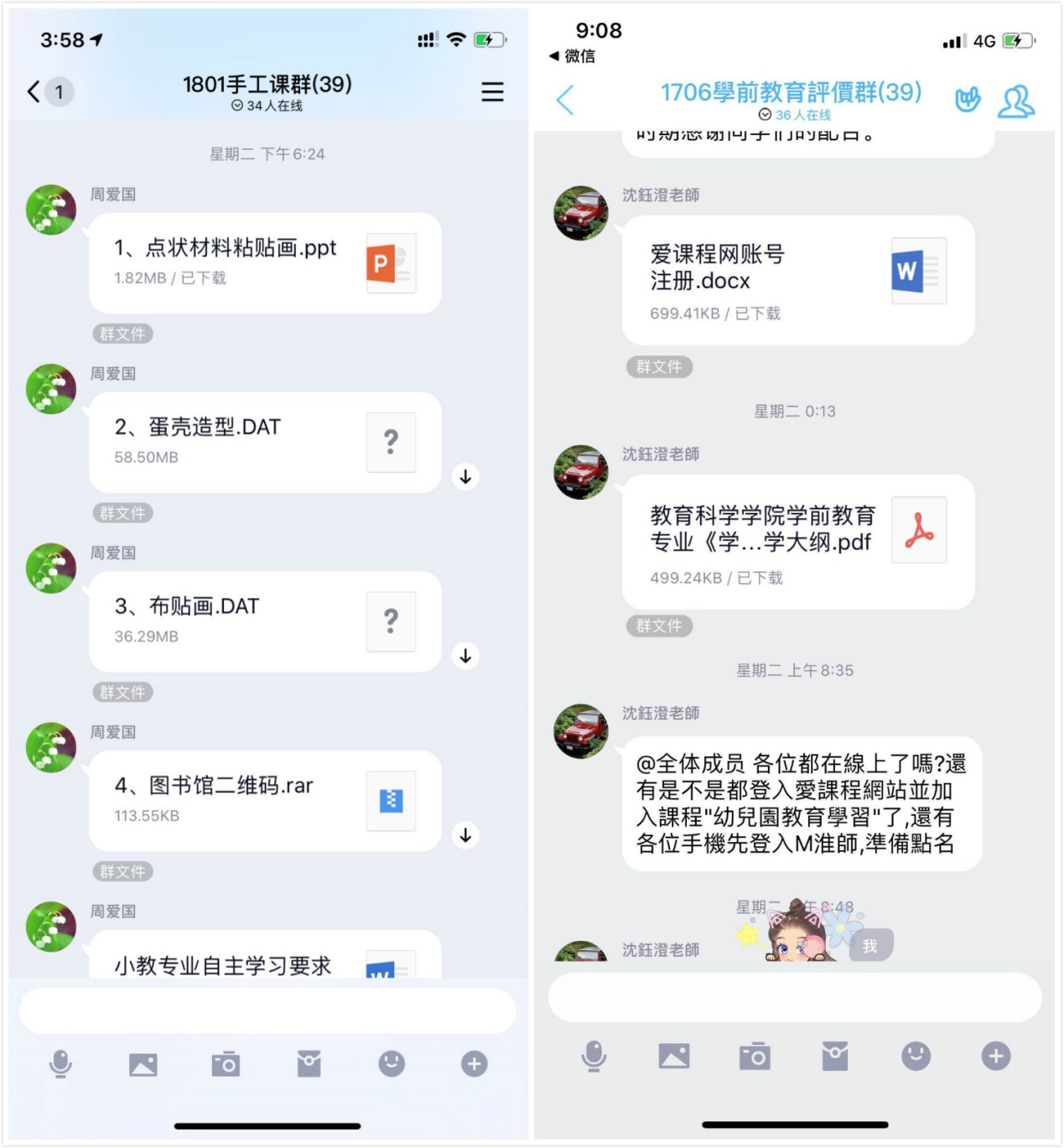 图为周爱国老师讲授《手工课》与沈玉澄老师讲授《学前教育评价》现场。