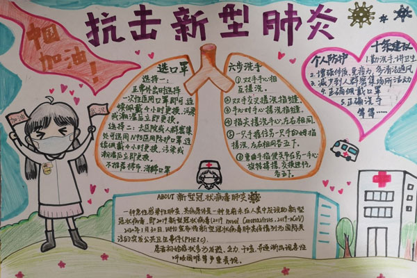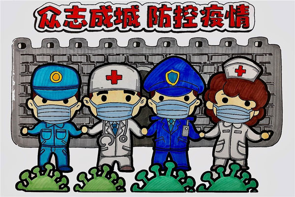 图为教科1706团支部绘制抗“疫”漫画。记者 邓明煜 摄