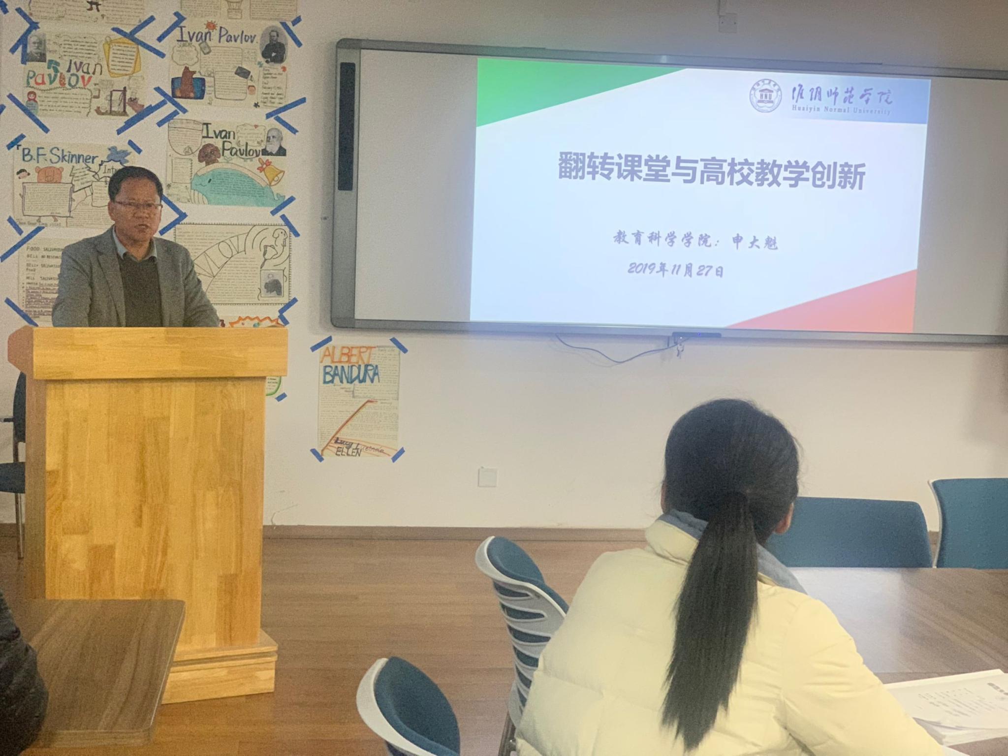 在活动中,申大魁围绕为什么要进行高校教学创新、成功实施翻转课堂的几个关键要素以及实施翻转课堂的常见问题与挑战展开阐述,并结合自己的实际教学经验指出在翻转课堂教学模式中需要建立更科学、更有效的平时成绩考核体系来提高员工自主学习能力。