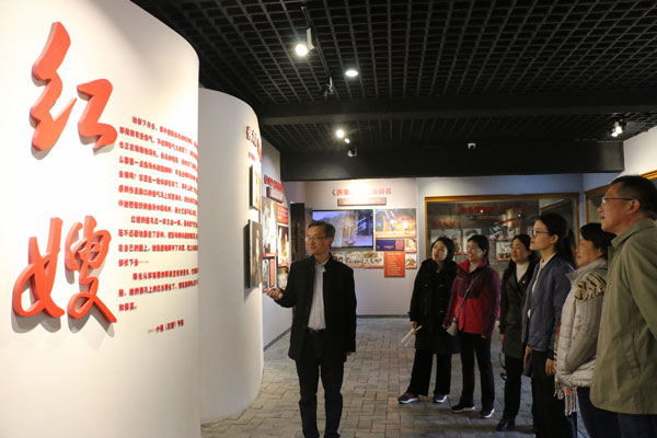 图为曹如军带领今年会师生党员参观红嫂纪念馆。记者 干爽 摄
