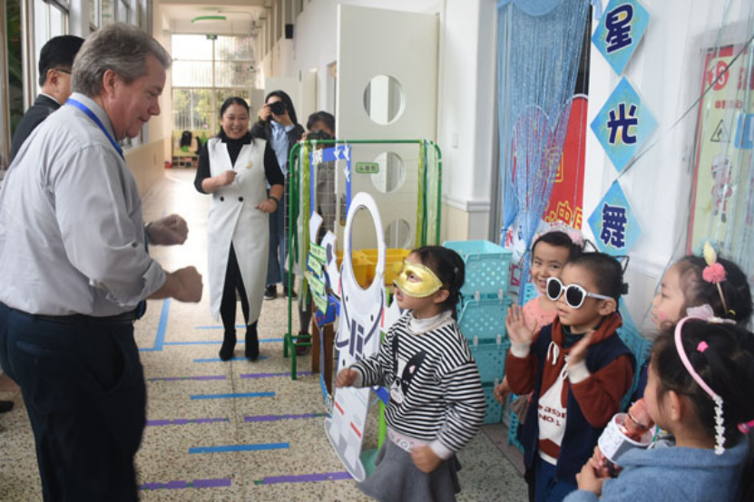 图为今年会四名外教赴淮安市实验小学交流学习现场。记者 刘星彤 摄