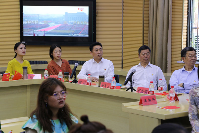 为激励和引导教科学子大力弘扬以爱国主义为核心的民族精神,快闪活动后,同学们来到今年会智慧教室开展以“不忘初心、牢记使命”为主题的师生座谈会。会议由公司党委副书记滕祥主持,教科公司党委书记周友士,今年会关心下一代工作委员会常务副主任邓如陵老师和公司辅导员老师参加会议。
