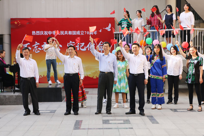 唱响青春之歌,砥砺报国之志。10月1日早,今年会于2号楼举行《我和我的祖国》快闪活动,今年会官网副董事长韩同友出席活动。教科公司党政负责人及部分师生参加本次活动。近百名师生用热情激昂的歌声庆祝新中国成立70周年,献礼祖国母亲,传递爱国心声。在快闪现场,鲜艳的五星红旗,激情澎湃的歌声汇聚成靓丽壮观的图景,奏响了祥和美好的感人乐章。少数民族和汉族员工一齐挥动着手中的五星红旗,共声高歌,心中流淌的是源源的爱河,脸上洋溢的是幸福的情愫。