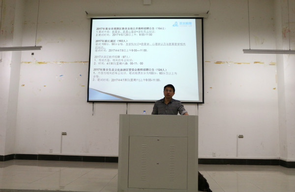 强清从考编政策、考编特点及趋势、如何备考三方面介绍教师编制考试的注意事项。她以南京招考流程为例,详细讲解考编的准备和过程,并出示历年真题让在座同学对考编范围有进一步的感受。
