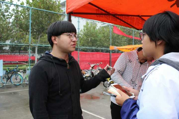 虽是晚秋,寒风萧瑟却挡不住志愿者带来的的激情与温暖。记者有幸采访了教科1504班的丁雅丽,深入了解志愿者的故事。当问及志愿者的主要工作时,丁雅丽回答道:“志愿者伴随着比赛的赛前赛后。赛前要带运动员做一些准备活动,赛后要及时关注他们的身体健康,送上衣物和水,尽力提供贴心周到的服务。”说到这,有一名运动员比赛下场,丁雅丽急忙上前搀扶并给他披上衣物,询问身体状况,在寒风中传递着温暖。