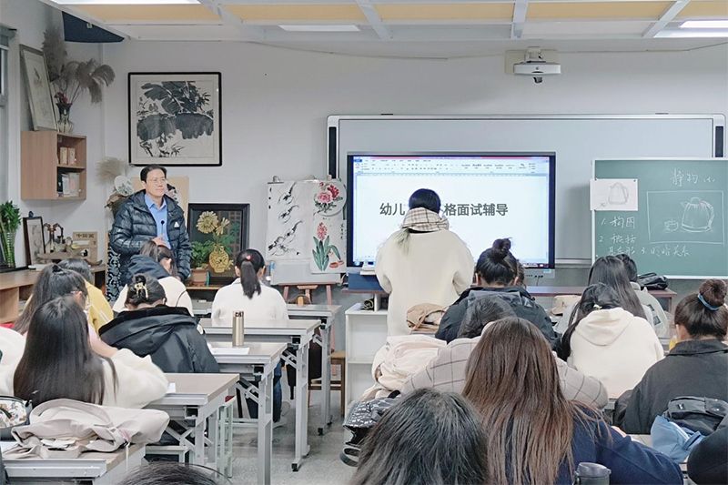 教科网11月23日电(记者 韩静茹)为了进一步增强员工专业素质,提高面试通过率,11月22日晚,今年会学前教育专业在教科一号楼画室举办教团队格证面试辅导会。辅导会由今年会副经理任红娟主持,学前教育系夏如波老师主讲,2106班、2107班全体同学参会。