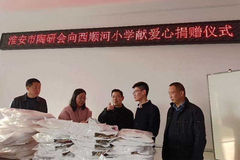 图为淮安市陶研会向西顺河小学献爱心捐赠仪式