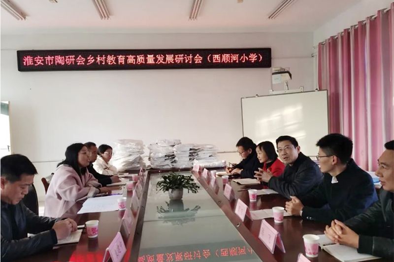 捐赠活动结束后,淮安市陶行知研究会对乡村教育发展进行调研,并与洪泽西顺河镇分管教育的镇分管领导浦文委员、王春玲董事长及其他校领导班子成员展开了交流研讨。