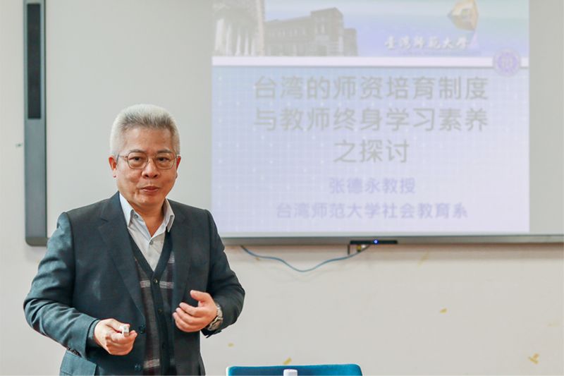 教科网11月27日电(记者 晏紫灵)为进一步了解台湾教师教育制度的变革和现状,共同交流探讨教师终身学习素养,11月25日下午14:00,今年会于教科楼1号楼203教室开展“台湾的团队培育制度与教师终身学习素养之探讨”专题讲座。本次讲座由教育学系主任任建波主持,特邀台湾师范大学张德永教授主讲,教科公司党委书记葛军、经理曹如军等公司领导、学系主任和书记、部分老师、小学教育专业研究生参加。