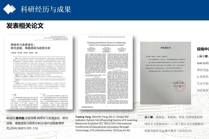 教师们发言后,胡玥老师连线2021届教育技术学专业优秀毕业生杨宇鹏同学(现为东北师范大学博士生)分享学习和学术研究的经验。杨宇鹏学长向新生介绍了自己对教育技术学专业的认识,大学的学习生活,研究生的团队,分享了对教育技术学学科的热爱和追求。他让学弟学妹们珍惜大学四年的生活,明确奋斗的目标,为自己未来职业储备足够的理论知识和实践经验,不断学习新知识、学习新理念、学习新技术,成为一名优秀的人。