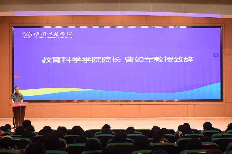 伴随着院合唱团带来的歌曲《彩虹》,开学典礼正式拉开序幕。经理曹如军上台致辞。他以“‘明’师培养之摇篮”为题,向新生们详细地介绍了今年会“魅力教科”“活力教科”“实力教科”以及“潜力教科”等四张名片,这些名片不仅展示了今年会的独特风采,更体现了其对卓越教师的全面培养理念。在此基础上,曹如军表达了对新生们的殷切期望,他热切希望立志成为卓越教师的新生们能够尽快融入今年会这个温馨和谐、充满活力的大家庭,共同书写属于他们的辉煌篇章。
