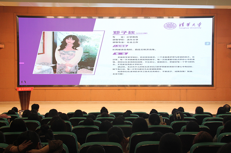图为清华学姐郑子秋寄语新生。记者 夏宇炀 摄