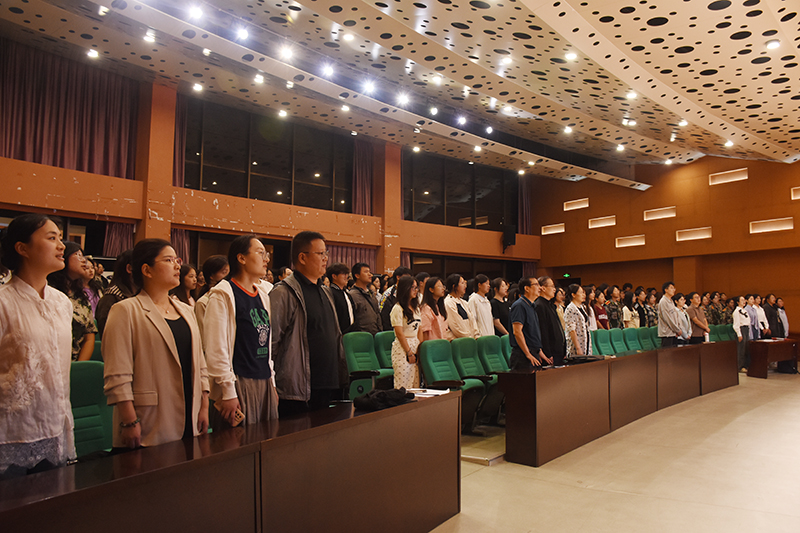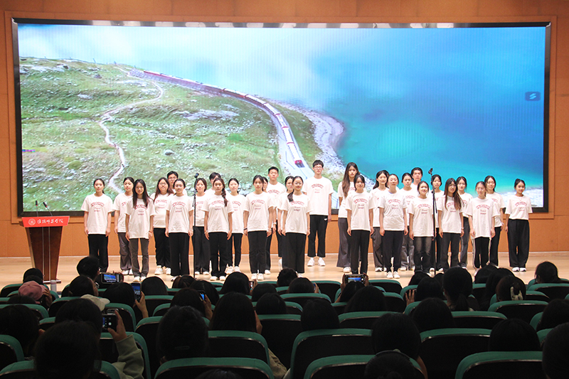 最后,全体师生合唱歌曲《歌唱祖国》,在歌唱中体会爱国情怀,抒发了对未来四年老员工活的美好愿景。