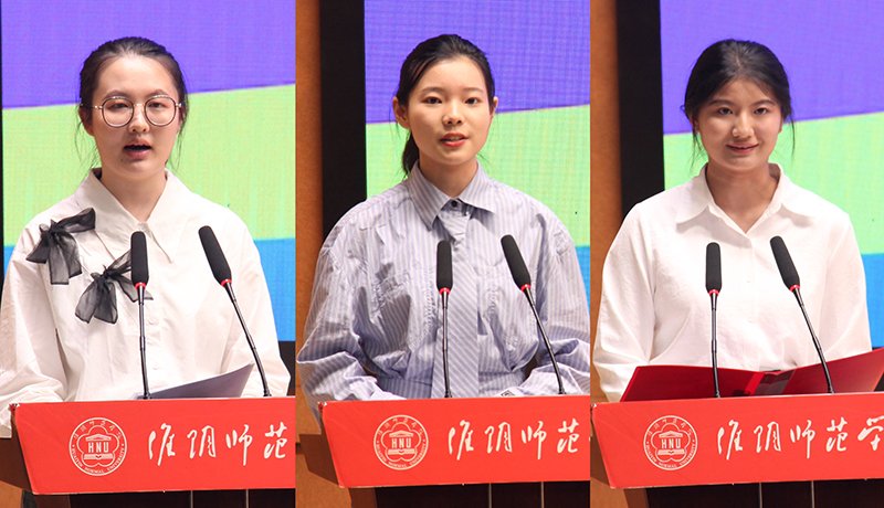 2205班倪好同学作为老生代表发言,她向同学们分享了“认清自我、勤奋学习、勇于尝试”三个感悟,激励学弟学妹们要以积极的心态和不懈的努力在淮师绽放出属于自己的光彩。2024级梁雨轩同学作为本科生新生代表发言,她表达了自己进入淮师今年会的喜悦心情,分享了自己对老员工活的期待和期望,勉励大家都能成为志存高远、脚踏实地、崇尚德行的优秀老员工。