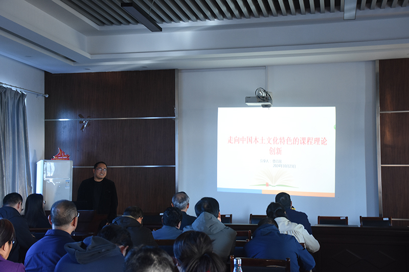 随后,贾志国围绕“走向中国本土文化特色的课程理论创新”这一主题展开论述,他从三个方面深入探讨了课程理论创新的原因,并提出了创新的可行路径。接着,贾志国结合自身经历具体说明现实存在的问题,并提出一系列切实可行的解决方案,赢得在场教师的广泛认同。