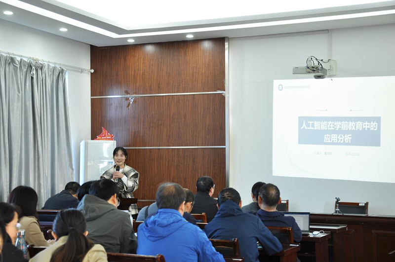 接着,曹琪敏围绕“人工智能在学前教育中的应用分析”这一主题,从四个方面展开论述,强调了人工智能对学前教育的重要影响,并提出了学前教育创新性发展的可行路径。
