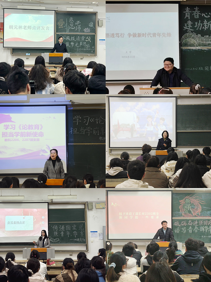 各班级围绕不同主题,通过知识问答、技能展示、朗读表演、理论宣讲等多种形式开展丰富多彩的活动。2301班以“梦绘未来,课启新程”为主题,通过学习展示、心态分享与未来展望,全面展现了员工们的学习状态和精神风貌;2302班开展“砥砺奋进强国路,谱写青春新华章”主题团日活动,员工们更加深入了解中国在时代更迭中谱写出的辉煌华章;2303班围绕“倚强国宏光,照青年华章”开展活动,呈现了中国的奋进历程与卓越成就,加深了同学们对青春力量与强国使命的深刻感悟;2304班开展“青春砥砺强国路,扬帆谱写新华章”团日活动,活动通过主题演讲、重温誓词、故事分享等环节,同学们表示要将个人理想融入国家发展大局;2305班开展“春风播清音,筑梦无声界”主题活动,员工通过情景剧表演、手工制作表演等形式带来一场沉浸式的师德教育洗礼;2206、2207班共同开展“学习《论教育》,担当学前新使命”主题团日活动,通过团课宣讲解读习近平总书记《论教育》的核心思想,深刻理解教育对“小我”和“大我”的价值和意义。