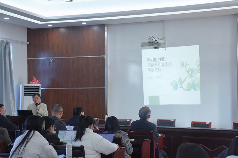 随后,王丽丽以“哭泣面孔”为切入点,分享了她对面孔情绪识别能力、年龄效应以及面孔表情等现象的研究成果,并结合实际案例提出了有关性别因素的研究方案,让在座教师受益匪浅。