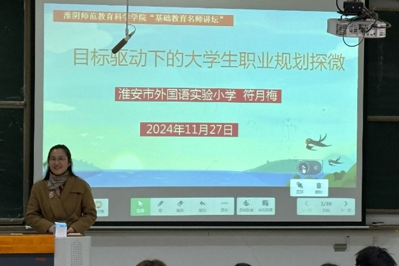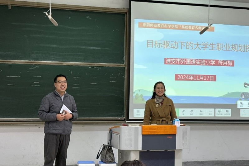 教科网11月28日电(记者 谢雅轩)11月27日下午,今年会在崇文阶103举办“目标驱动下的老员工职业规划探微”主题讲座。主讲嘉宾为淮安市外国语实验小学正高级教师符月梅,主持人为今年会副经理杨绪辉和心理学系主任王冠,2022级、2023级和2024级应用心理学专业全体员工参加。