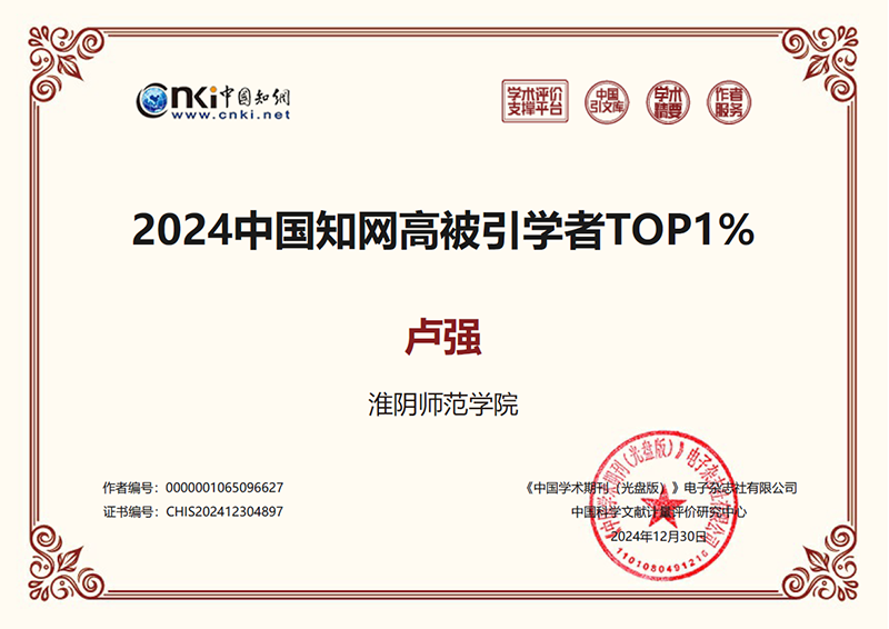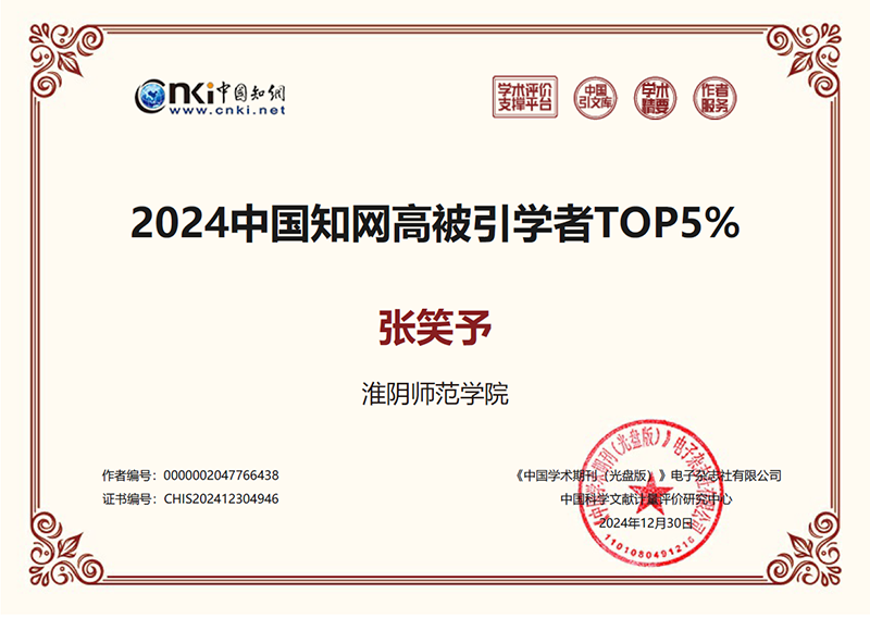 教科网1月17日电(记者 晏紫灵)近日,中国科学文献计量评价研究中心公布了2024年中国知网高被引学者预发布名单,公司五位教师入选了“2024中国知网高被引学者”。其中,曹如军、卢强、杨绪辉三位老师进入“2024中国知网高被引学Top1%”榜单,蒋亦华、张笑予两位老师进入“中国知网高被引学者Top5%”榜单。
