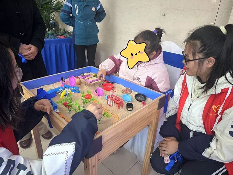 4月2日,在淮安市残疾人综合服务中心,一场特殊的对话正在彩色沙盘上悄然展开。“槐青”志愿服务队20余老员工志愿者与自闭症儿童围坐在环形沙盘前,彩色城堡、卡通动物、汽车道路等百余件沙具在孩子们手中流转,构建出主题多样的微型沙盘世界。应用心理学专业的黄嘉玲同学轻声道:“当这个小男孩反复把鲨鱼埋在沙堆深处,我们读懂了他在陌生环境中的不安。”志愿者们化身为心灵向导,透过沙具的排列组合,与“星星的孩子”无声的心语进行着一场心灵的交融。