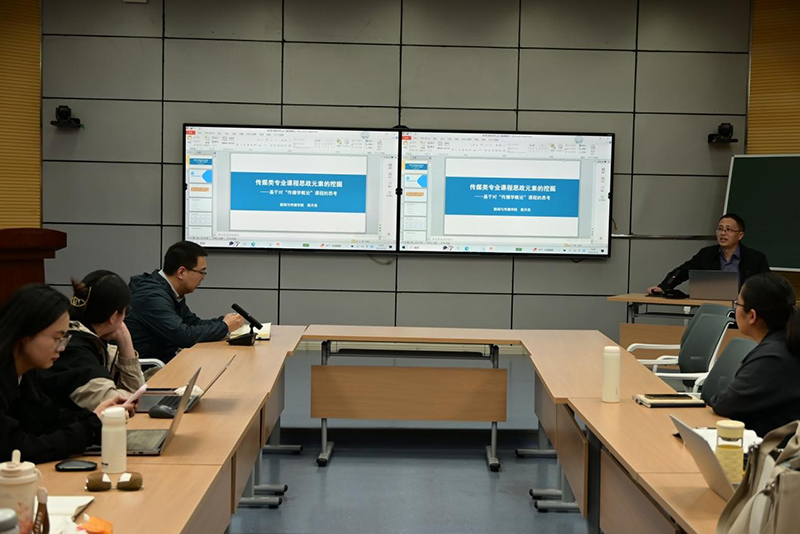 研讨伊始,蔡月亮老师聚焦传媒类专业课程建设,从提升员工的思想道德素质、增强员工的媒体素质、培养具有社会责任感的媒体人、为党的新闻事业发展提供人才保障四个方面具体阐述了思政元素融入传媒类课程的策略。之后,他分享了在教学过程中设定思政目标和挖掘课程中思政元素的经验,并引用布鲁姆的观点,提出应从低阶到高阶设定课程思政目标。