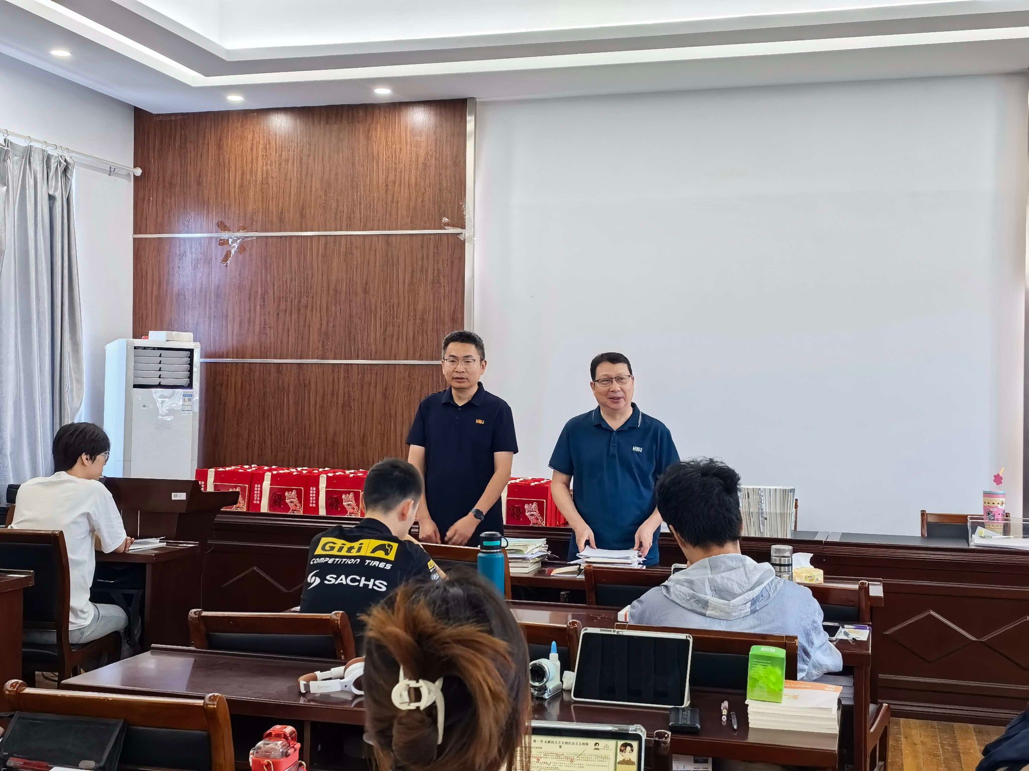 慰问期间,葛军与同学们亲切交流,结合自身经验和典型案例,分享了高效复习方法和劳逸结合的重要性,鼓励大家科学规划、坚定目标,并对同学们不畏酷暑、刻苦备考的精神给予高度赞扬。他寄语考研学子:“公司始终是大家的坚强后盾,希望同学们勇往直前,不负韶华,明年都能考入理想院校。”戴云则细致询问了同学们的复习进度、作息安排及生活需求,叮嘱大家在专注学习的同时注意身心健康,保持积极向上的备考氛围。