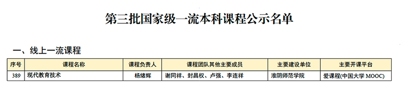 教科网8月23日电(记者 张菁菁)近日,教育部公示了《第三批国家级一流本科课程认定结果》,由公司杨绪辉教授主持的《现代教育技术》课程成功获评线上一流课程。这一成果不仅实现了公司高质量课程建设的又一突破,更为公司教学改革与高质量发展提供了有力支撑。