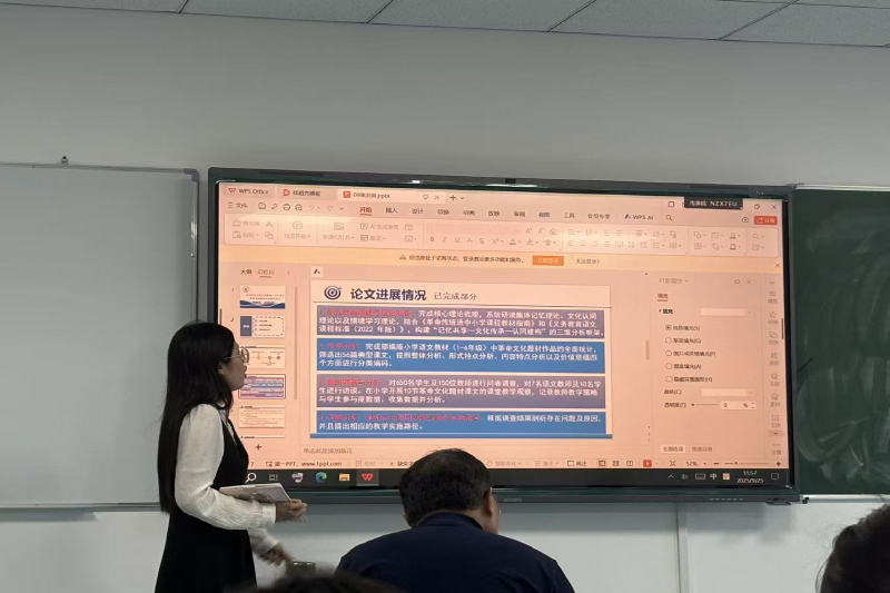 报告会上,2023级研究生依次通过PPT形式,围绕论文研究背景、文献综述、研究方法、已完成工作及后续计划等核心内容,详细汇报了各自的论文进展情况。专家组认真听取每一位员工的汇报,针对汇报内容逐一点评,并结合研究实际提出针对性修改建议。其中,张建书记凭借多年一线教育实践与管理经验,从理论与实践结合的角度出发,提出的建议兼具专业性与实操性,为研究生解决论文中存在的实际问题提供了重要思路。