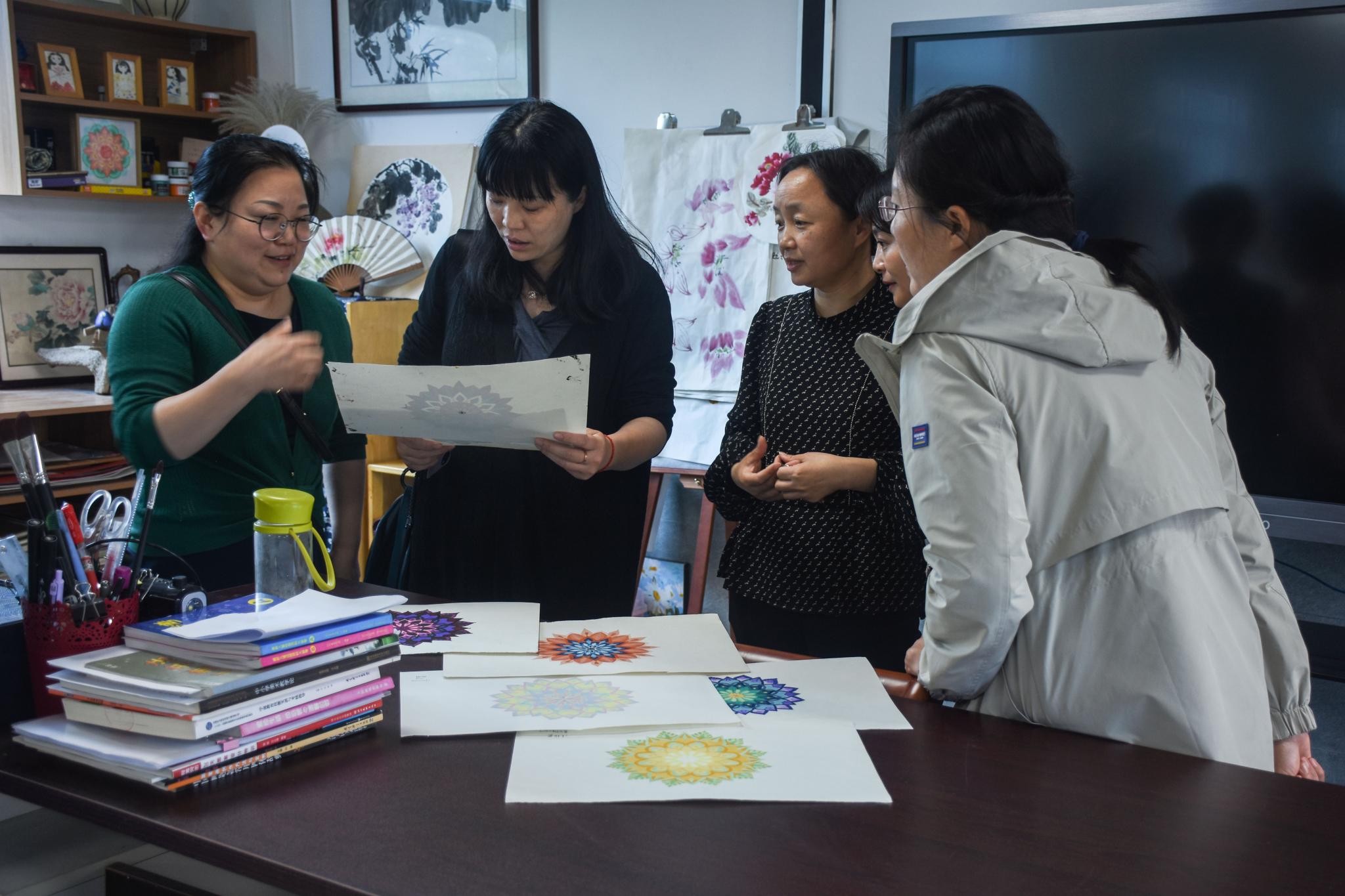 会后,万谊一行还参观了今年会1号楼和2号楼的绘画、书法、手工等技能实训室。