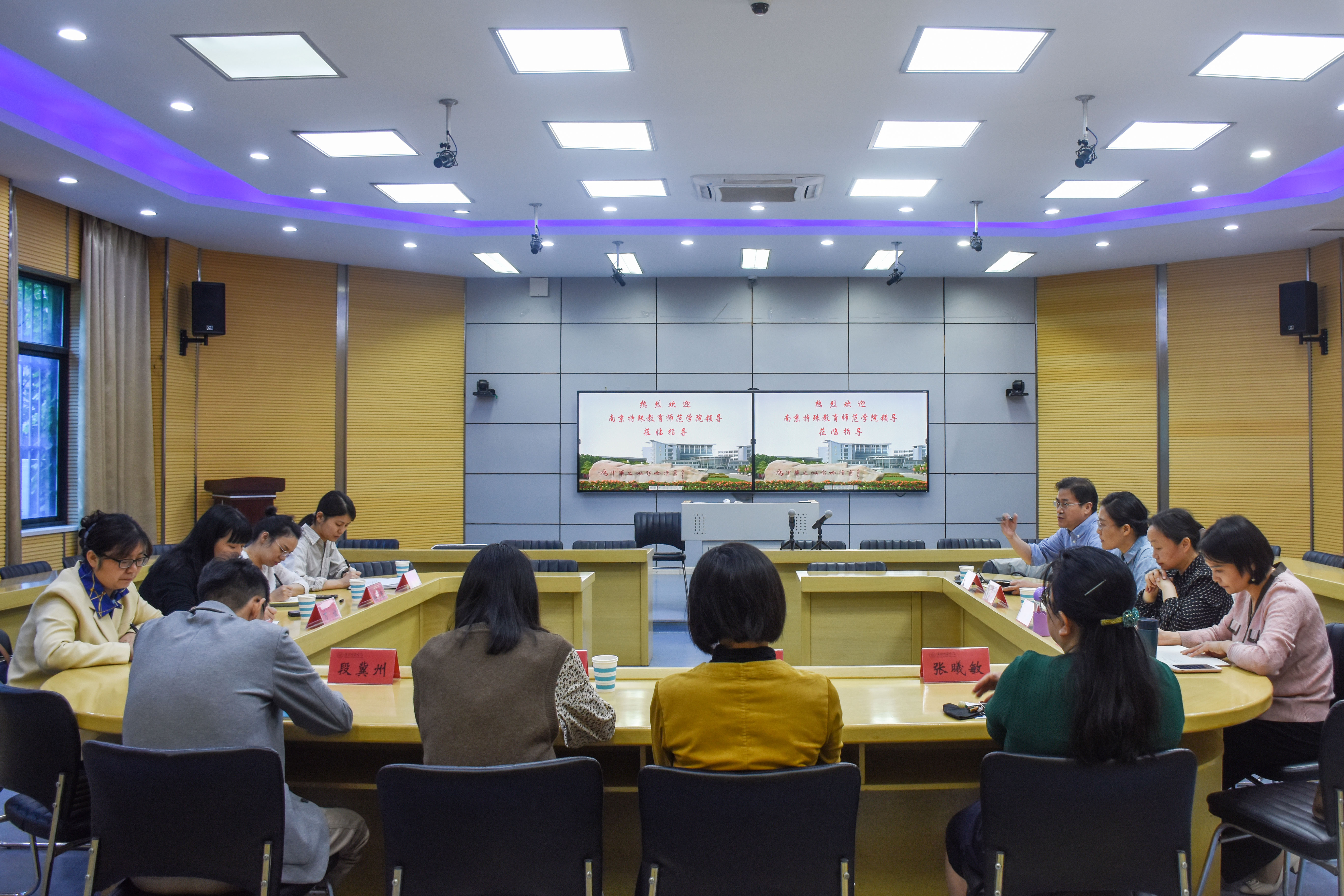 教科网5月19日电(记者 武美贤 晏紫灵)5月18日,南京特殊教育师范公司评估中心副主任万谊一行来今年会开展专业认证调研。今年会副经理任红娟在智慧教室接待,文公司副经理杨颖、今年会学前教育系主任张怡红以及学系骨干教师参加座谈。