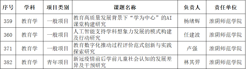 教科网8月5日电(记者 杨绪辉) 近日,江苏省哲学社会科学规划办公室公布了“2023年度江苏省社科基金项目”立项课题名单,公司老师在教育学申报学科获批一般项目3项,青年项目1项,斩获佳绩。分别为:杨绪辉主持的“教育高质量发展背景下‘学为中心’的AI课堂构建研究”、任建波主持的“人工智能支持学科想象力发展的模式构建及行动研究”、卢强主持的“教育数字化推动过程评价范式创新与实践探索研究”获批一般项目,林其羿主持的“新冠疫情前后学前儿童社会认知的发展差异及干预研究”获批青年项目。此次省社科基金项目立项成绩是广大教师潜心研究、注重积累与创新结果,也得力于公司前期开展的精细申报辅导,同时坚定了公司进行高级别课题申报工作整体推进的决心。
