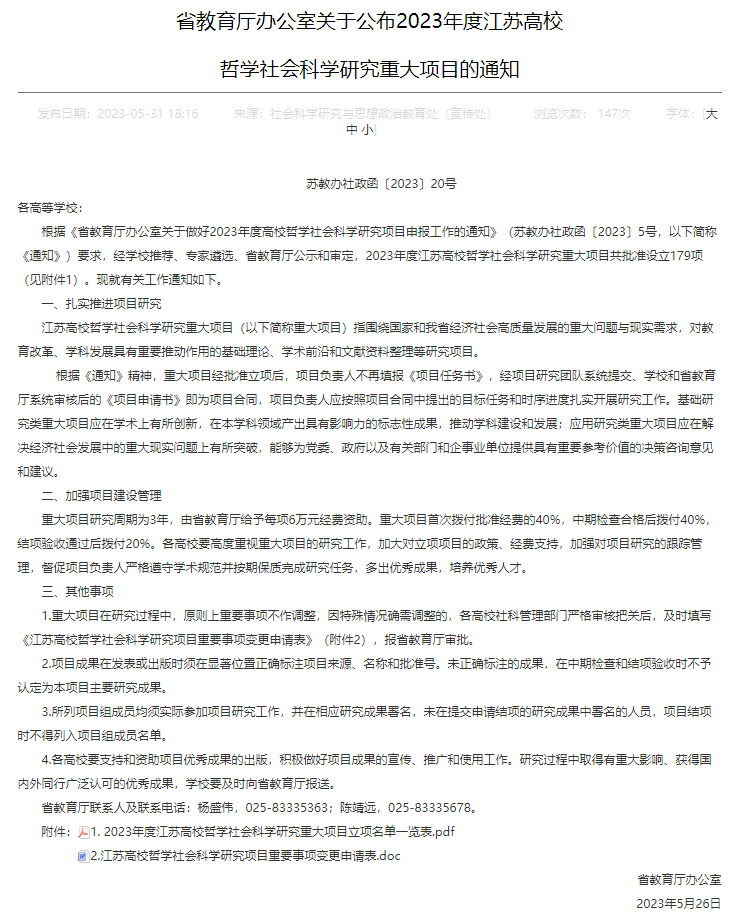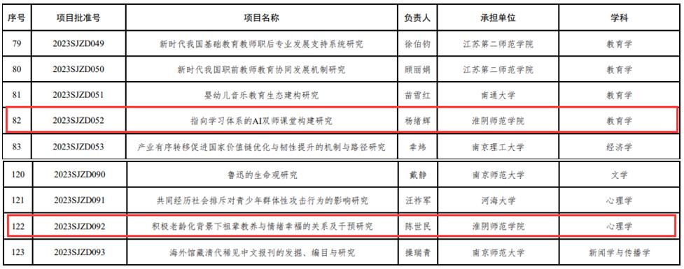 教科网6月9日电(记者 杨绪辉)近日,江苏省教育厅公示了2023年度江苏省高校哲学社会科学研究重大项目评审结果,公司杨绪辉老师申报的“指向学习体系的AI双师课堂构建研究”、陈世民老师申报的“积极老龄化背景下祖辈教养与情绪幸福的关系及干预研究”两个项目榜上有名,为2023年度公司高级别项目的立项工作取得了开门红,同时也为推进公司高质量发展贡献了力量。