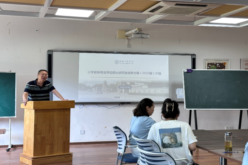 随后,陈太忠就《小学教育专业学位硕士公司产品方案(2025版)》进行了深入解读。他从培养定位与目标、培养方式与导师指导、课程设置与学分、专业实践、学位论文要求等关键环节出发,细致剖析了本专业的培养方案与毕业要求。陈太忠鼓励新生们尽早确立学术目标,科学规划研究生生涯,充分利用公司优质资源,不断提升自身的创新能力和实践能力。