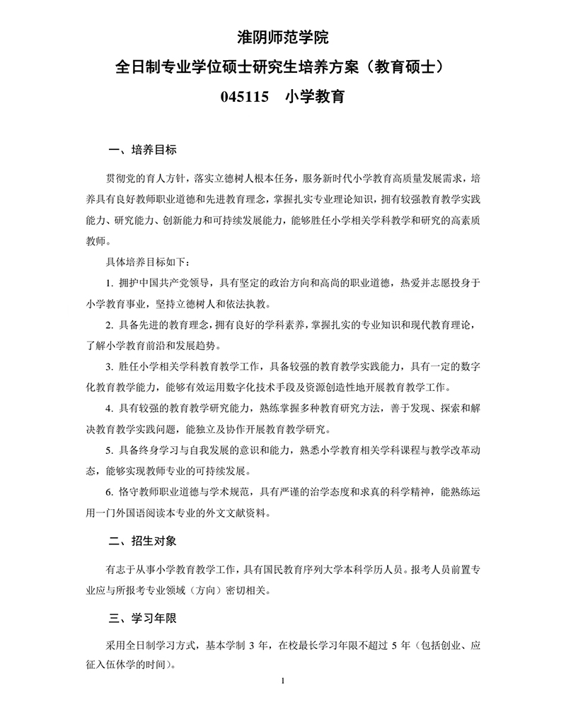 全日制教育硕士专业学位(小学教育)公司产品方案