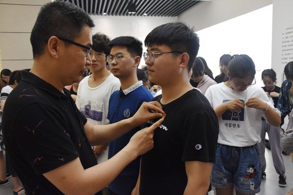 戴云为毕业生们分发并佩戴党员徽章,对他们顺利毕业表示祝贺,对他们走上新岗位表示祝福,鼓励他们不断前进。
