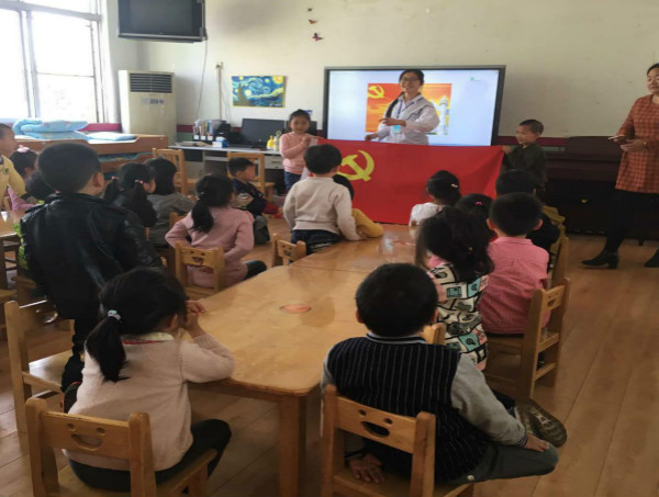 活动中,陆佳静同志先向孩子们介绍党旗,她亲切热情的话语感染着孩子,孩子们在春风中感受着党的精神,水灵的双眸闪烁着亮晶晶的神采。之后,张佳颖同志走到孩子身边,以生动形象的安全故事,绘声绘色的形象表演,吸引着孩子的目光。孩子们也纷纷举手,争先恐后的向小伙伴们讲诉自己知道的安全知识,稚嫩的话语中,包含了自己对安全的理解,“从小做起,从小事做起”成为孩子和党员同志们的共识。窗外微风轻扬,树影摇曳,包丽丽同志带着孩子们到操场游戏,孩子快乐的笑声如山涧清泉,咚咚欢畅。我们感受着孩子的天真无邪,同时也提醒我们,给孩子多一份安全保护,为世界増一份银铃欢笑。
