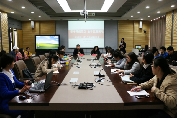 员工会主席包丽丽、副主席窦立昌也向在座同学分享组织活动的经验。包丽丽强调,“在组织活动中会遇到种种困难,过程艰辛,但在其位谋其职,要树立坚定的理想信念,做一个有担当的人”。