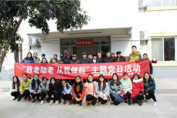 活动中,党支部成员积极主动为老人打扫卫生、整理房间,热情大方和老人聊家常,奉献爱心,排解寂寞。李倩倩和一位盲人老人分享了自己去各地旅游的经历,用自己生动的语言为老人描绘出美丽景色;洪晓丹一边握住99岁老太的手,一边叮嘱老人注意抗寒,保重身体;王新用葫芦丝吹响一首《军港之夜》,让随行来的同学和院里的老人啧啧称赞;窦立昌带领大家齐唱《北京的金山上》,歌颂共产党光辉历史,坚定信念“我们迈步走在社会主义幸福的大道上”。同时,敬老院一位吴爷爷回忆自己在60年代三年自然灾害的艰苦岁月,让在场同学们感受到心灵的震颤。