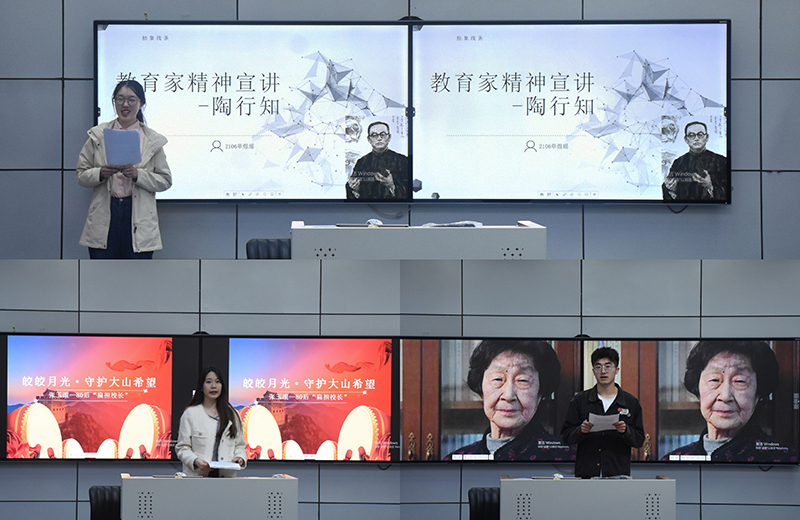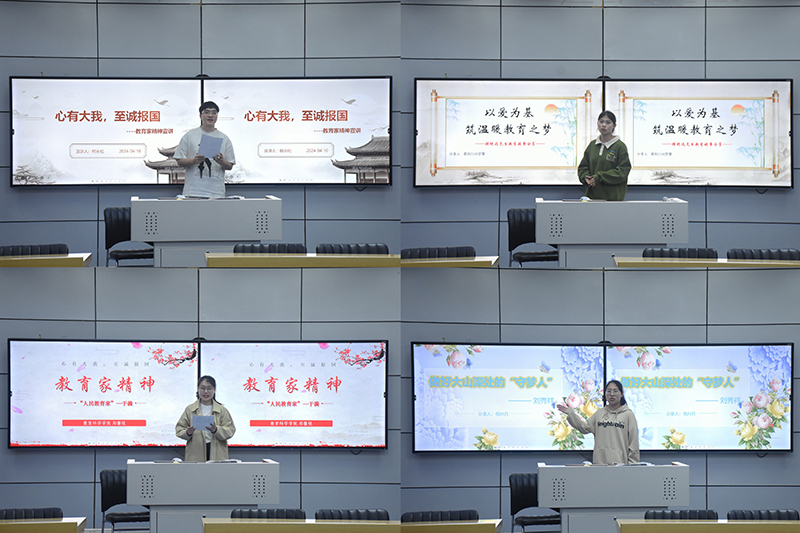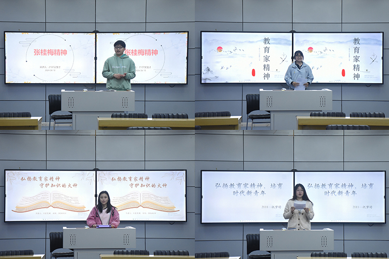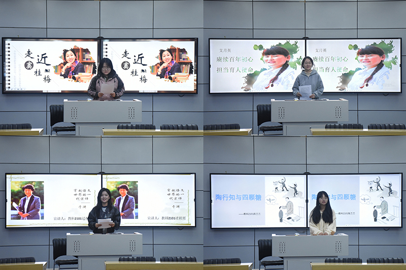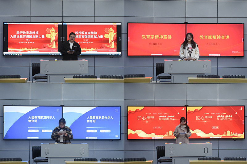 在宣讲过程中,每位宣讲员都展现出了自己独特的风采,借助自己精心制作的PPT结合绘声绘色的演讲,在讲台上对于“教育家精神”进行了精彩绝伦的解读,为大家呈现了“教育家精神”的魅力。党员们分别分享了陶行知、张桂梅、顾明远、于漪等杰出教育家的感人事迹,从不同角度展示了教育家的精神内涵。虽然他们奉献的方式各异,但是他们都秉承着令人敬佩的“教育家精神”,他们的人生历程和无私奉献的精神令在场的同学们生出由衷的敬意。