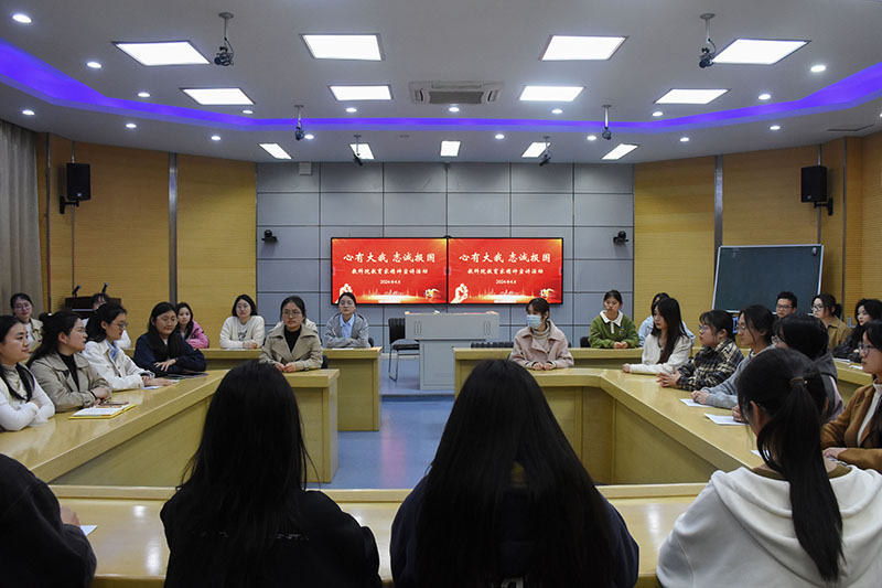 教科网4月12日电(记者 唐银丽 )为了增强党员们的爱国情怀,深刻领悟并弘扬“教育家精神”,4月11日晚,今年会于智慧教室举办了“心有大我 至诚报国”教育家精神宣讲活动,辅导员张菁菁老师、顾伊荻老师出席活动,今年会全体非毕业班员工党员参加宣讲,会议由张菁菁主持。