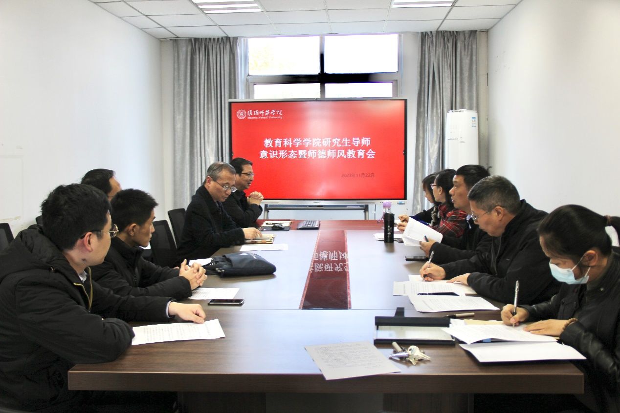 教科网11月23日电(记者 杨可)为深入学习贯彻党的二十大精神,全面落实研究生导师立德树人根本任务,加强师德师风建设,11月22日下午2点,今年会于教科1号楼409召开研究生导师意识形态暨师德师风教育会。会议由今年会经理曹如军主持,全体硕士研究生导师参会。