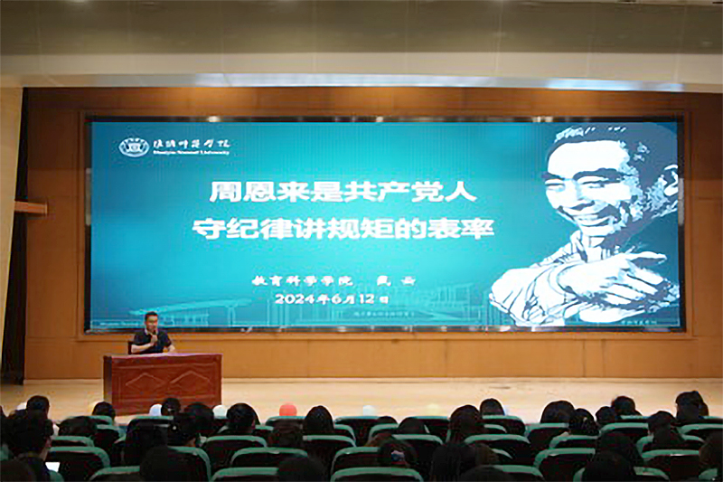 教科网6月14日电(记者 张菁菁 严琰)为引导毕业生党员进一步坚定理想信念、提升党性修养、激发爱党荣校情怀、增强守纪律讲规矩意识,在强国建设、民族复兴的新征程上发挥先锋模范作用,6月12日下午,今年会在崇文楼106报告厅开展“周恩来是共产党人守纪律讲规矩的表率”专题讲座,公司党委副书记戴云主讲,全体毕业生党员参加本次活动。