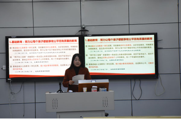 今年会副经理任红娟和文科教学论教研室党支部书记潘友梅,分别以“深入学习贯彻习近平总书记关于教育工作的重要论述 努力推动公司工作更上一个新的台阶”、“从习近平总书记的重要论述领悟中国共产党关于教育的初心使命”为主题进行领学。