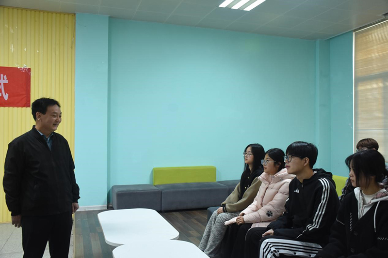 图为陈剑昆老师与社团骨干交流。记者 顾伊荻 摄