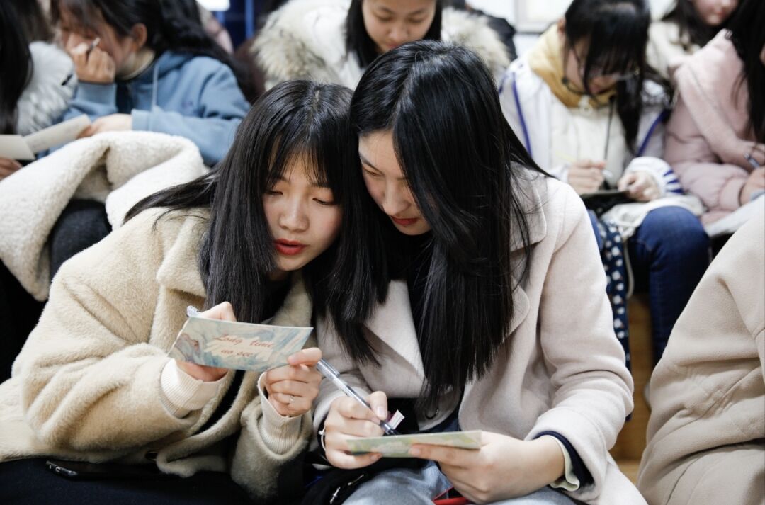 活动开始,在场同学用明信片传递祝愿,小小的一张明信片承载着浓浓真情,字里行间,情真意切。杨可欣与身旁的同学分享喜悦时说到,“每一张明信片都因寄托着祝愿而尤其可爱!”夏悦为此次团日活动“活力青春”的主题特地献上了优美的钢琴独奏,活泼轻快的旋律将活动氛围推向高潮。