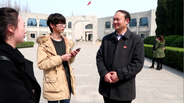 接着我们采访了一个老员工,他与家人朋友一同前来,我们得知他就是本地人,不止一次来过,经常陪同家人与朋友前来参观,他说,每一次来都有新的感受,相比以前,周恩来纪念馆新修了一番,有了很大变化,作为新时代的老员工学习伟人精神是很有必要的,又可以在好的天气里陪家人散散步,感受春天的气息,比较有意义。记者团们不由得为这个男生点个赞。