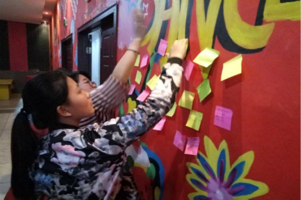 经过班级团委讨论,本次活动决定以班级小型晚会的形式举办。主持人宣布活动开始后,由1503班的学姐们开场,带来了第一个节目。拿着国旗、穿着绿军装的她们先向大家讲述了自己对红军长征的感触和理解。他们的讲述引起了在场同学的共鸣,将大家带入了对于长征精神的思考中。此刻音乐声响起,学姐们深情演唱起《我的祖国》,更是引起同学们对长征的缅怀和激起同学们实现祖国伟大复兴的斗志。1603班的学弟不甘示弱,上台向大家声情并茂的朗诵了自己为永无畏惧的红军战士书写的赞美诗。四渡赤水,巧渡金沙江,强渡大渡河,跨越雪山草地!同学们陷入沉思:现在的幸福生活是多少战士的汗水和热血换来的,我们应该学会感恩和珍惜。同学们争先恐后上台进行才艺表演,小品、舞台剧、朗诵.......时间过去了将近一半,主持人示意“长征小知识竞答赢口令红包”、“老学长老学姐解百问”等小游戏可以开始,瞬间点燃了演艺厅的活跃气氛。15届与16届同学倾心交谈,相得益彰。这类小游戏带动了同学们的积极性,增加同学们的知识面,并将此次活动推向高潮。接下来是自由时间,同学们充分利用演艺厅的器具条件,自我组织了“K歌”活动。偶尔搞怪的演唱,在场同学无不为之前仰后合,厅里气氛和谐融洽,两班同学亲若家人。活动结束之时,主持人发给同学们各式各样的便利贴,并请他们写下此刻对“长征精神、红色岁月”的感想。