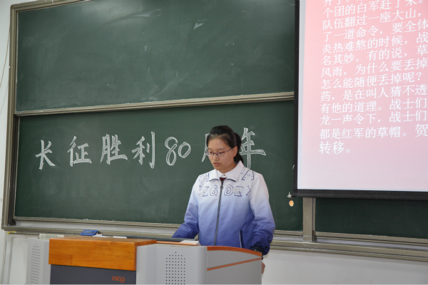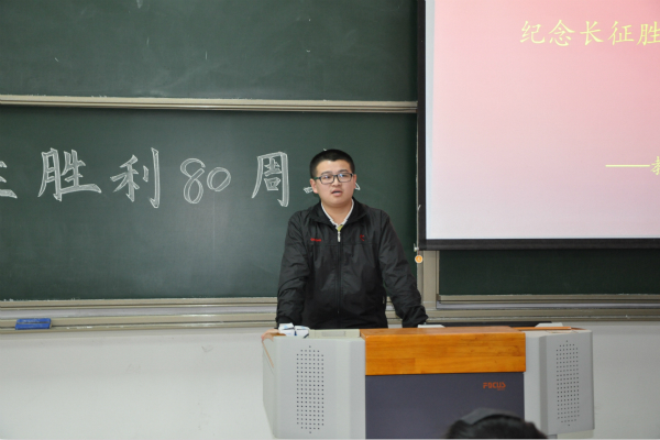 活动进入尾声,16级团支书王子韩同学主动请缨发表了自己对红军长征的见解,“红军不怕远征难,万水千山只等闲,五岭逶迤腾细浪,乌蒙磅礴走泥丸……长征,是一首雄壮、豪迈、大气磅礴的革命交响曲!还记得80年前红军二万五千里长征的艰辛,它见证了我们中华民族的艰险历程,体现了中国的辉煌,矗立起长征者不怕牺牲,勇往直前,不畏艰险,不屈不挠,积极进取,自力更生,艰苦奋斗英勇的雕像……”,学妹的发言震撼人心,却又发人深省。随着新中国的发展,我们更应该好好发扬长征精神。比如,在公司里,我们应主动帮助、关心身边的同学;在家里,我们要尊敬父母等等。